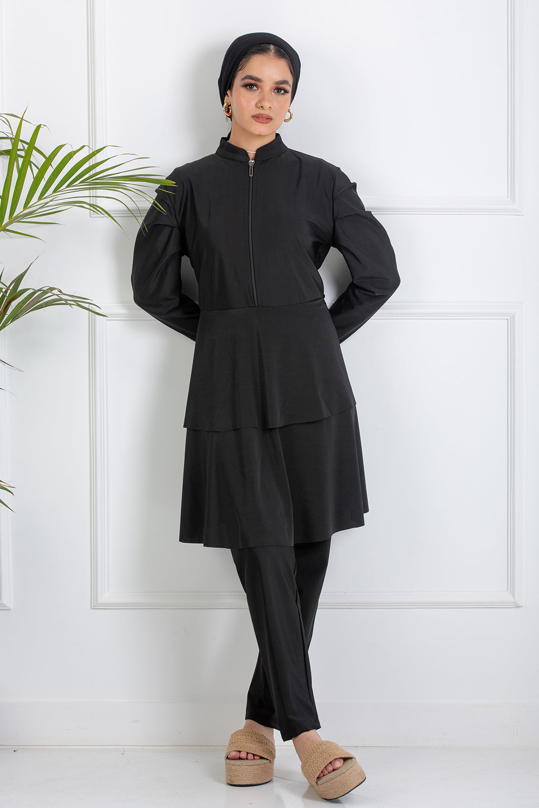 The Splash Ruffle Burkini is designed to make a splash this season. Featuring stylish ruffle layers that add a touch of playful sophistication, this swimsuit offers both glamour and comfort. The sleek black fabric not only enhances your figure but also provides superior stretch and durability, making it ideal for all your swimming adventures. Crafted from high-quality material, this swimsuit ensures a comfortable fit that moves with you, giving you the confidence to shine both in and out of the water.